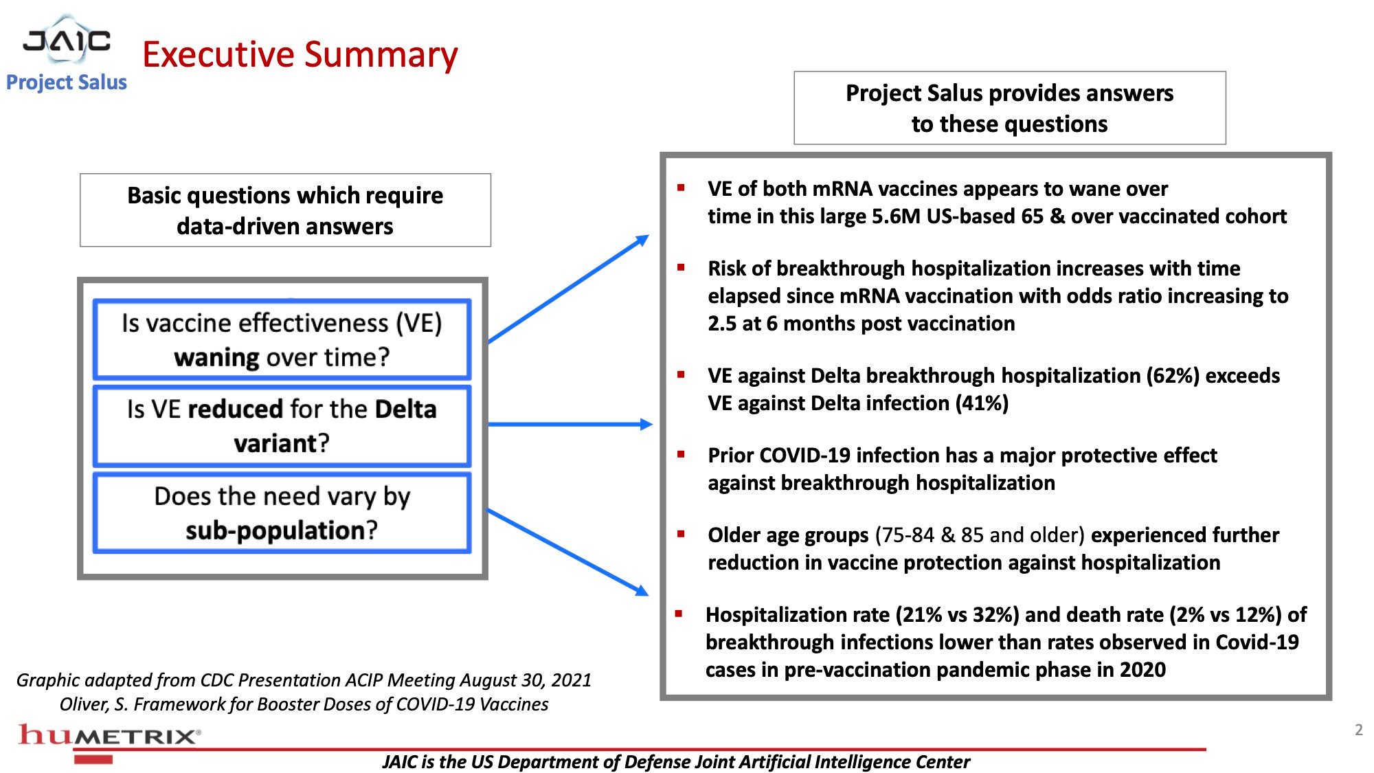 Key findings of the DoD / JAIC / Project Salus / Humetrix analysis